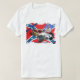 The shirt is good quality and fits just fine, but the colors of the printing are not as bright as in the sample photo. Not the best. The colors are a lot brighter in the sample photo; when I received the shirt they appeared faded. The red looks a little more pink and the blue is a lot lighter. N.B. I did not wash the shirt yet.