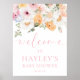This baby shower welcome sign features a soft watercolor spring floral design. The script heading is an image that cannot be edited. All of the other text is fully editable. For more advanced customization of this design, simply select the "Customize It" button above.