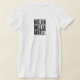 My overall review is that the T-shirt is nice, it fits true to size however the font is significantly smaller than advertised and you can't read it. The printing is unreadable and there is a strain to read it. It does not look like the advertised product. Maybe the shirt color is darker or a larger more visible font should have been used. Photos with and without flash and font is barely legible.