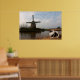 A handsome Keeshond posed in front of a windmill and canal in his native Holland.