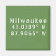 Latitude & Longitude map coordinates for the city of Milwaukee Wisconsin in modern white industrial font