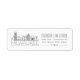 This label features a stylized illustration of the city's unique skyline with its name underneath.