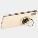 The piece to peel off is on the entire back of the grip when received, though it's not super easy to tell, just lift carefully with a fingernail end and peel off. The grip sticks well to the phone, is very stable and immobile once adhered. Know exactly where you want it before pressing it on. The printing was fine, colours were quite true to what I saw on my personal screen. Fine small lines turned out well. The artist's Mandala design is gorgeous.