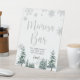 Silver winter wonderland baby shower, and bridal shower sign with pine trees and snowflakes.