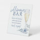 Mimosa Bar Watercolor Blue Floral Champagne Pedestal Sign