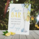Pour the bubbly Mimosa Bar Standing Pedestal Sign. Featuring Watercolor Lemons, beautiful elegant dusty slate blue flowers and watercolor champagne glass. Perfect for any main squeeze bridal shower, wedding or baby shower !