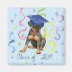 Congratulate your favorite graduate with a gift featuring a happy Miniature Pinscher graduate wearing a mortarboard amid a flurry of confetti.