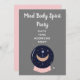 A party invitations suitable for a new age or mind body spirit health party. This invitation features a new age crystal ball theme. The background color and text can be changed to suit your taste.