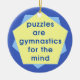 Puzzles are gymnastics for the mind text in a yellow and blue design makes a unique design for family and friends at birthdays and holidays.