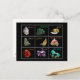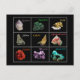 Virtual mineral collection - black postcard with nine colorful crystal specimens.