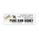 Golden tones of honeycomb and a cute little honeybee with your product description in bold text: i.e., PURE RAW HONEY or LOCAL HONEY, RAW HONEYCOMB was designed to grab attention to your product. Add your apiary name, location and social media handle or phone number.