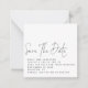 MINI Black White QR Code Wedding Save the Date. A charming MINI size 2.5" square. PLEASE NOTE if you are in the US, the 2.5” square is smaller than the minimum US postage requirement so please choose size 5.25” x 5.25” square if you are intending to mail them (Note too that square cards may cost more to mail than rectangular ones). Minimalist black and white design with informal script for the header and lots of white space on a square shape for a contemporary style. Add your QR code to your wedding website on the back by replacing the QR code on the sample. . You can create QR codes for free online. Simply search “QR code creator” and lots of options come up to create for free.