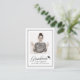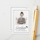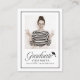 Black and white simple mini size graduation announcement and Invite features elegant graceful serif font and script with photos in black and white, simple and sophisticated, Custom it with your own photo and grad party information in the back.