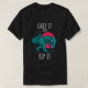 My 11 yo wore adult XL (5’7” 165#). The 8yo is small framed. She wore adult small and tied it in the back. Grandma wore adult large with long sleeve shirt underneath. Tall girl adult medium. Dark haired male adult large. Good quality dark Heather gray, Gildan brand shirt. -it was next up from basic choice and cost about $20 per shirt. Not too thick or thin. Washed and dried well, no major shrinkage. Not see-through. Can wear a bra under it fine. Screen print is just as shown and well done, front and back.