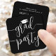 These graduation invitations are small in size but big on stylish simplicity. Announce the graduate's achievement and invite family and friends to celebrate with elegant mini graduation party enclosure cards. The small square business card size makes them easy to insert with graduation announcements or to hand out to family and friends (they do not come with envelopes.) Sold in packages at an affordable price, these inserts offer a chic option to stay within a budget. The wording on this template is simple to personalize, and the colors can be customized using the the Zazzle design tool. The modern black and white design features handwritten style script calligraphy with a mortar board cap and elegant classic typography. This graduation invitation card is a unique way to announce a special day celebration. Congratulations to the graduate!
