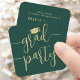These graduation invitations are small in size but big on stylish simplicity. Announce the graduate's achievement and invite family and friends to celebrate with elegant mini graduation party enclosure cards. The small square business card size makes them easy to insert with graduation announcements or to hand out to family and friends (they do not come with envelopes.) Sold in packages at an affordable price, these inserts offer a chic option to stay within a budget. The wording on this template is simple to personalize, and the colors can be customized using the the Zazzle design tool. The modern green and gold design features handwritten style script calligraphy with a mortar board cap and elegant classic typography. Please note that gold is printed color, not metallic foil. This graduation invitation card is a unique way to announce a special day celebration. Congratulations to the graduate!