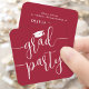 These graduation invitations are small in size but big on stylish simplicity. Announce the graduate's achievement and invite family and friends to celebrate with elegant mini graduation party red and white enclosure cards. The small square business card size makes them easy to insert with graduation announcements or to hand out to family and friends (they do not come with envelopes.) Sold in packages at an affordable price, these inserts offer a chic option to stay within a budget. The wording on this template is simple to personalize, and the colors can be customized using the the Zazzle design tool. The modern red and white design features handwritten style script calligraphy with a mortar board cap and elegant classic typography. This graduation invitation card is a unique way to announce a special day celebration. Congratulations to the graduate!