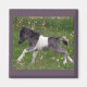 Detailed photo of a baby mini horse on her first frolick in the pasture