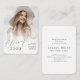Black and white simple mini size graduation announcement and Invite features modern chic script and photo, simple and elegant. Custom it with your own photo and grad party information in the back.