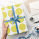 Cute and trendy Mini Polka Dots Wrapping Paper. This design features small circle polka dots in yellow and white. Text can be added to this design to give it a personal touch.