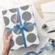 Cute and trendy Mini Polka Dots Wrapping Paper. This design features small circle polka dots in gray and white. Text can be added to this design to give it a personal touch.