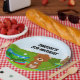 The fun paper plate design features an adorable gopher next to a birthday cake-shaped mini golf obstacle, with a classic windmill spinning in the background, adding a whimsical and fun touch to the celebration.