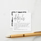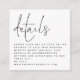 MINI QR code Script Black White Wedding Details. A charming miniature size 2.5" square to enclose with your invitations with your Qr code to your wedding website on the back. The header is large and in an informal set script, with the details beneath and lots of white space on a square shape for a contemporary style. Easily personalise the rest of the text. Your QR code will be automatically generated to update the sample code in the design, when you simply change the sample URL in the template with your own wedding website URL. You can change text and background Colors to any of your choice via edit further.