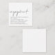 A charming MINI SIZE 2.5" square. PLEASE NOTE if you are in the US, the 2.5” square is smaller than the minimum US postage requirement so please choose size 5.25” x 5.25” square if you are intending to mail them (Note too that square cards may cost more to mail than rectangular ones). Elegant Script Black White Engagement Party Invite. The header is in an elegant set handwritten style with the details beneath. Lots of white space at the top for a contemporary feel! Easily personalise with your own details.