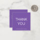 TINY SIZE Modern and Simple Purple Thank you Square Note Card. A MINI size 2.5” x 2.5” square. PLEASE NOTE if you are in the US, the 2.5” square is smaller than the minimum US postage requirement so please choose size 5.25” x 5.25” square if you are intending to mail them (Note too that square cards may cost more to mail than rectangular ones). The font color and type can be changed via the edit menu. You can also change text and background colors on either side if you wish.