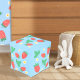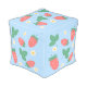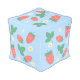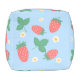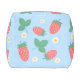 A sweet cute design that features a delightful and playful pattern of scattered mini strawberries on a soft, sky blue background. The strawberries are rendered in a vibrant red with green leaves, and they are interspersed with small, delicate white or light yellow strawberry flowers, adding to the charm. The overall impression is cheerful, fresh, and sweet, making it ideal for nursery’s decor and baby, toddler, child rooms.