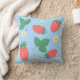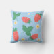A sweet cute design that features a delightful and playful pattern of scattered mini strawberries on a soft, sky blue background. The strawberries are rendered in a vibrant red with green leaves, and they are interspersed with small, delicate white or light yellow strawberry flowers, adding to the charm. The overall impression is cheerful, fresh, and sweet, making it ideal for nursery’s decor and baby, toddler, children’s rooms.