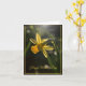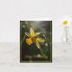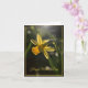 A delicate miniature daffodil is bathed in the warm glow of the early morning sun, creating a mesmerising play of light and shadow. The vibrant colours of the narcissus flower pop against the soft, green backdrop. Spring floral photography and a perfect card for Mother's Day. Blank inside to add your own personal message.