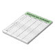 Miniature golf scorecard template custom notepad. Personalized tear away note block for mini golf player, golfer, business, sports club, shop, game, location etc. Lined paper for 18 holes golf course and 4 players so people can fill in their scores and add up their total number of shots on each hole. Simple layout with title, lines, text and colors that can be changed optionally. Handy paper sheets for keeping score in match ups with friends and family.