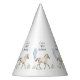 Celebrate a "little" milestone with this elegant, minimalist storybook-style Party hats. Featuring a hand-painted watercolor leopard-appaloosa miniature horse and soft blue balloons, this design is perfect for a child's first birthday. The clean, airy layout and classic serif typography create a high-end, timeless feel.