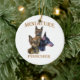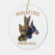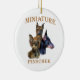 Three Miniature Pinschers posed on a ceramic Christmas Ornament for the Christmas holidays.