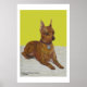 A lovely red Miniature Pinscher is the main theme in this painting by, Kimberley Elmore Petross
