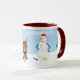 Unique Miniature Pinscher Christmas design. Min Pin with a bit of snow on his nose. Irritated snowman looks on. To ward off the cold the Min Pin has on a scarf and hat that are the colors of his country.