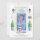 Announce your new address with our stylish announcement featuring a Miniature Schnauzer, blue front door, welcome mat, slate sign, topiaries and a floral wreath set on a gray brick background.