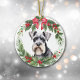 Miniature Schnauzer Terrier Red Bow Wreath Ceramic Ornament
