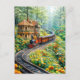 Miniature train winding through spring hills holiday postcard