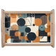 This serving tray features a minimal geometric abstract seamless pattern in a retro and vintage style. The bold lines and shapes create a unique, eye-catching design, perfect for adding a touch of classic elegance to your activities.