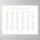 Chic and elegant wedding seating chart poster. This alphabetized seating chart features 6 vertical rows with approximately 36 to 40 names for each row. Versatile and simple, this template allows for easy customization according to number of guests. The front carries a warm golden font against a white background and framed by a light taupe border. The back of the board has a lovely chic wheat color.