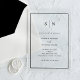 These elegant, modern clear acrylic wedding invitations feature a simple minimalist text design, with a classic black frame at the border. Add your initials or monogram to make them completely your own.
