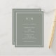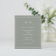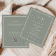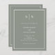 These elegant, modern, budget all-in-one wedding invitations are printed on a paper sheet. They feature a simple sage green and white minimalist text design, with a classic frame at the border. Add your initials or monogram to make them completely your own. The back of the invitation has room to add any guest details, plus a scannable QR code so guests can RSVP online at your wedding website.