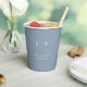 These elegant, modern wedding or bridal shower paper cups feature a simple white text design on a dusty blue background that exudes minimalist boho style. Add your initials or monogram to make them completely your own.