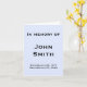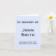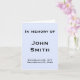 This minimalist funeral or memorial service card features the message "In memory of", and the personalized name and birth/death dates of the individual who has passed on. The message on the inside can be personalized. It could be used at the funeral of somebody who has recently passed on.