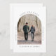 Minimal save the date announcement card featuring your photo in an arched picture frame and simple modern typography.