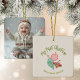 Minimal, gender neutral baby's first Christmas personalized keepsake ornament with photo on the back. Created from a hand drawn whimsical Christmas ornaments. Original art by Leslie Larson.