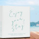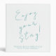 Modern guest information binder features a minimal design in a simple tropical white and turquoisecolor palette. "Enjoy your stay!" in elegant script with branded name and address or custom text; guest information subject presented in simple font.