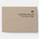 Minimal Beige Linen Gold Monogram Return Address Envelope
